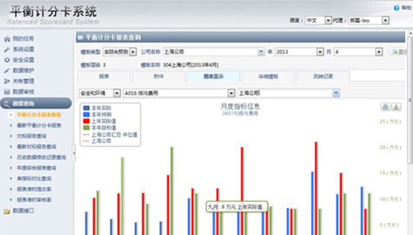 系統(tǒng)實現(xiàn)了基于平衡積分卡理念的公司戰(zhàn)略層管理,將組織的戰(zhàn)略落實為可操作的衡量指標和目標值,并在系統(tǒng)中進行預(yù)測、填報、審批和數(shù)據(jù)分析,用來與預(yù)期管理目標進行比對,以便于獲取真實的目標數(shù)據(jù)值來調(diào)節(jié)公司的戰(zhàn)略。